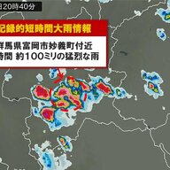 | 【速報】群馬県に記録的短時間大雨情報 富岡市妙義町付近で約100ミリ …気象庁は群馬県で猛烈な雨が降っているとして記録的短時間大雨情報を発表しました。 群馬県の富岡市妙義町付近では、8日午後8時40分までの1時間におよ… (出典:テレビ朝日系(ANN)) |
